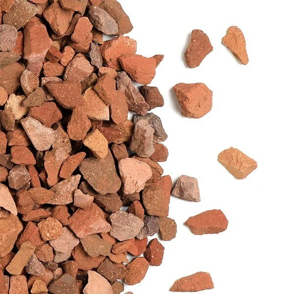 3/4″ Red Chip Brick is a crushed gravel that is commonly used as ground cover for driveways, patios, and walkways. It’s a lighter gravel that can also be used as a permanent alternative to mulch in garden beds.
